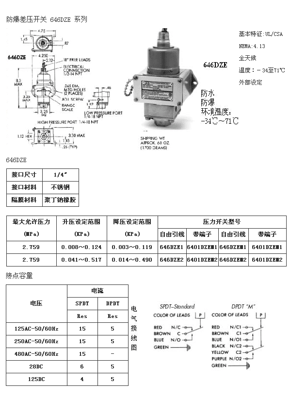 代理产品>>ccs压力开关>>通用加强防爆型差开关646DZE