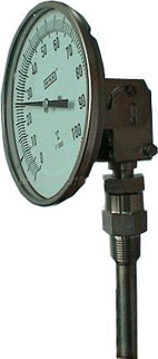 双金属温度计是一种测量中低温度的现场检测仪表。可以直接测量各种生产过程中的 -80 ℃ -+500 ℃范围内液体蒸汽和气体介质温度。